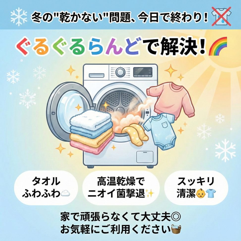 寒い日が続くと、洗濯物がなかなか乾かなくて困る…という方も多いのではないでしょうか。特に冬場は、部屋干しをしても乾きが悪く、気になるニオイが発生しやすい季節です。今回は、冬の洗濯における悩みの原因と、コインランドリーを活用した対策についてご紹介いたします。