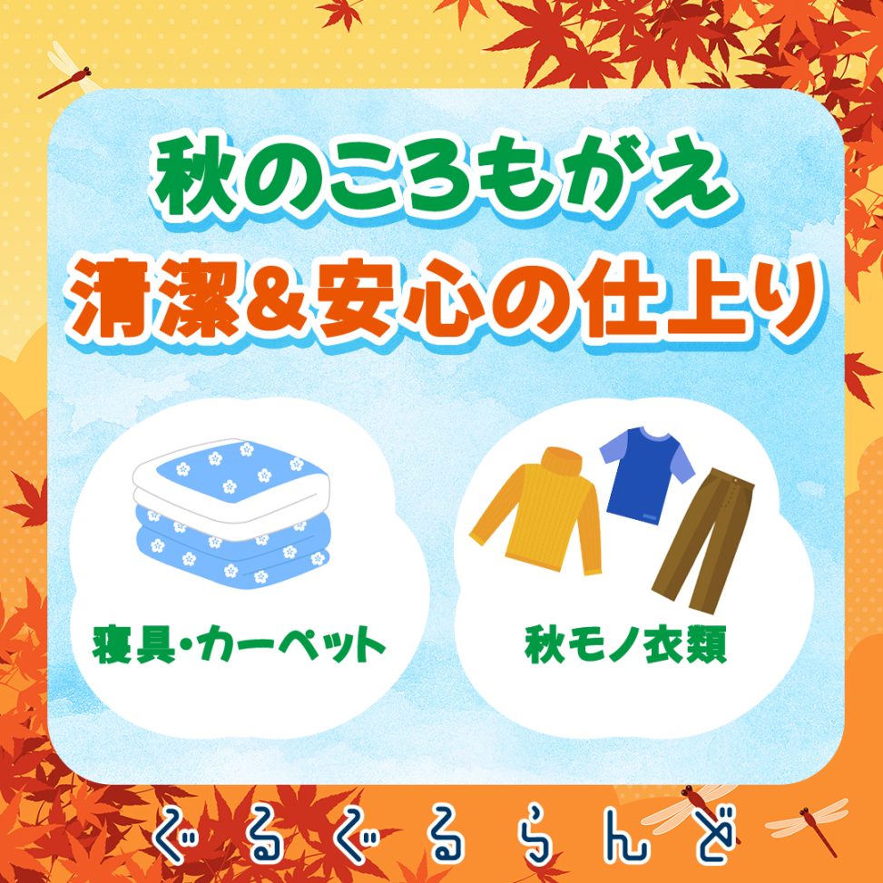 こんにちは、ぐるぐるらんどです。秋の訪れとともに、衣替えの季節がやってきました。長期保管していた秋物の衣類や寝具、カーペットを出してみたら…ダニや雑菌が気になりませんか?今回は、衣替えシーズンにおけるぐるぐるらんどの活用法と、その重要性についてお話しします。